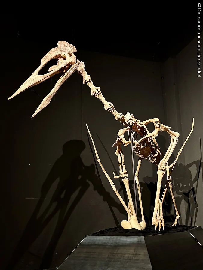 Weitere Highlights sind in der Museumshalle zu sehen. Neben original Fossilien wird „Dracula“, eine lebensgroße Rekonstruktion des größten und schwersten jemals gefundenen Flugsauriers – ein spektakuläres Unikat. Mit einer Flügelspannweite von 14 Metern und einer Höhe auf allen Vieren von etwa vier Metern übertrifft er alle bisher entdeckten Flugsaurier – und ist größer als so manches Kleinflugzeug. Seine Knochen sind hohl und dünnwandig, so dass das Riesenwesen nur wenige hundert Kilogramm gewogen haben dürfte. Entdeckt wurde „Dracula“ 2009 im rumänischen Transsilvanien.